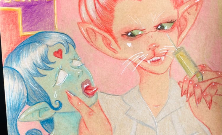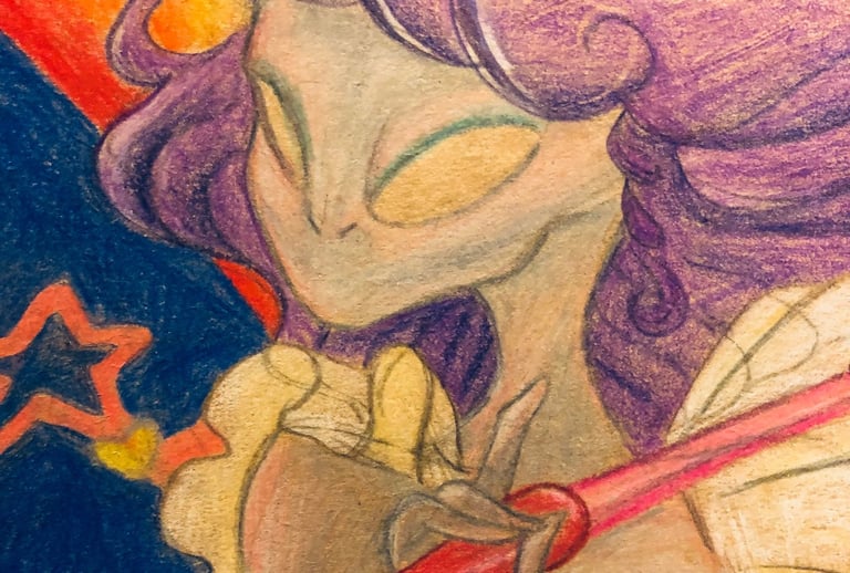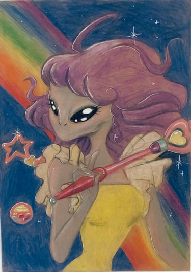 Colored pencil representation of Creamy from "Wonderful Creamy" or "Creamy Mami", the japanese animation from the 80s.
