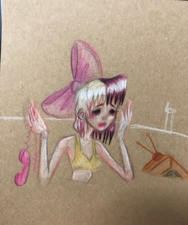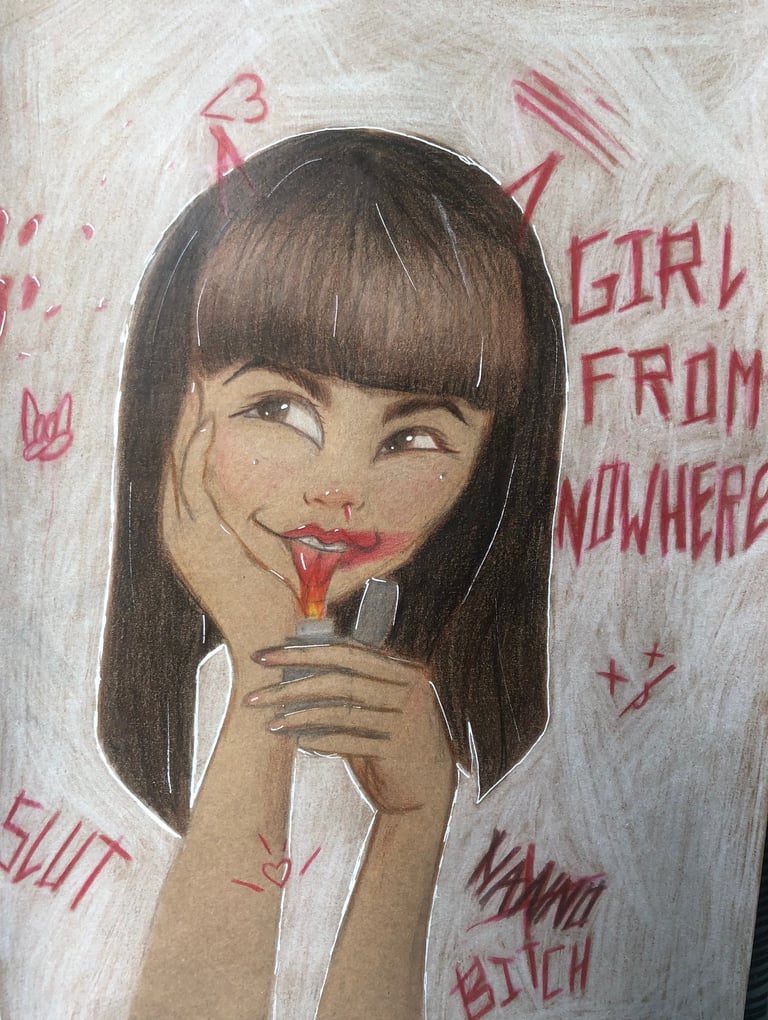 Colored pencil representation of Nanno from the Netflix series Girl From Nowhere.
