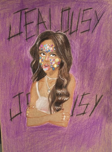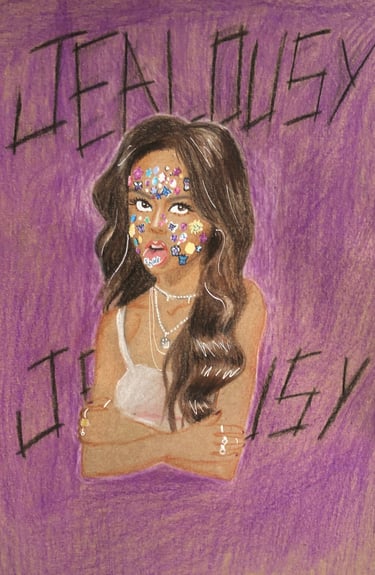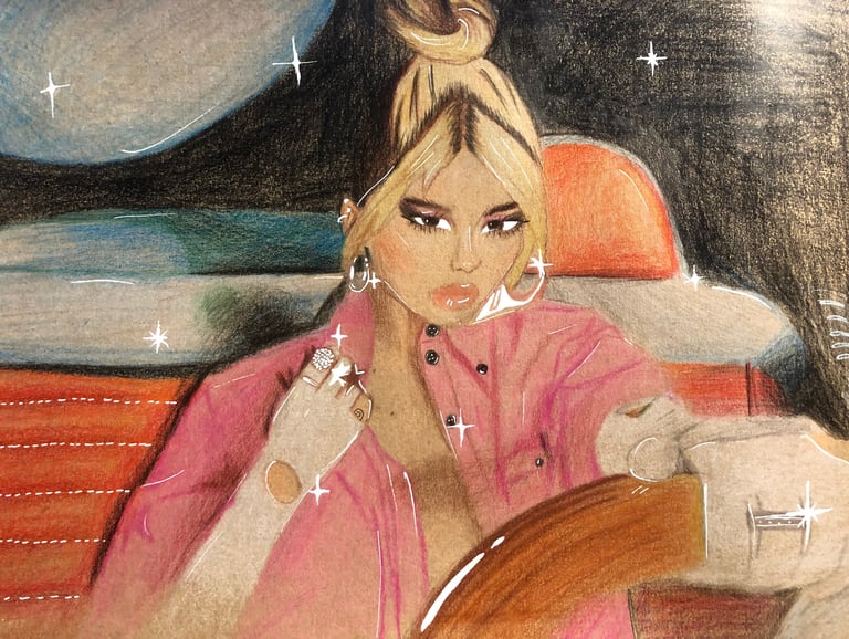 Colored pencil representation of Dua Lipa's Future Nostalgia album cover.